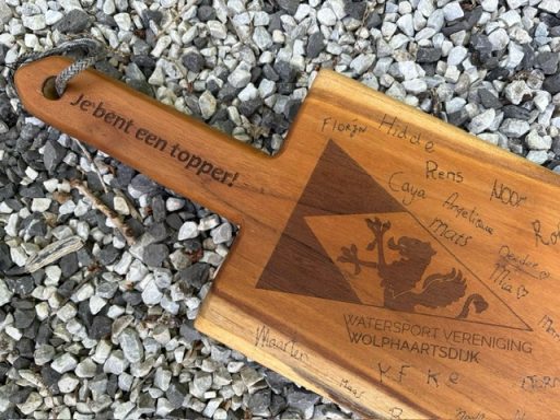 Ik kan de planken voorzien van een gepersonaliseerde tekst door middel van een laser printer. Hiervoor werk ik samen met Jan-Jaap van de Peijl (atelierdehoefstal.nl)